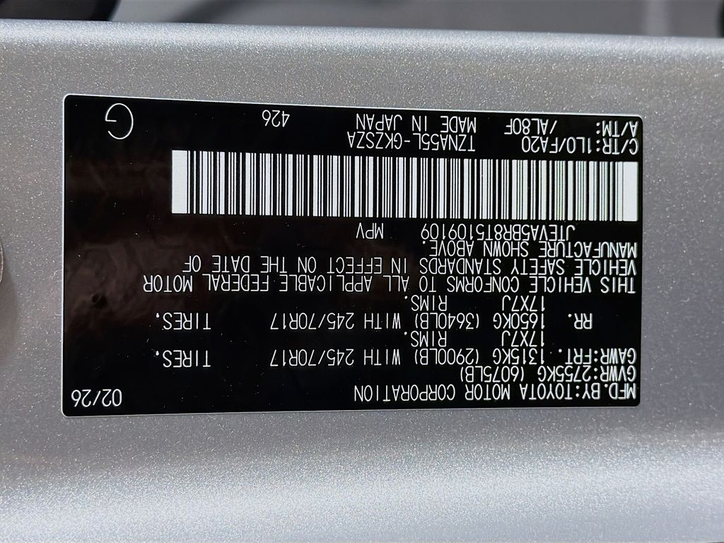 - Transmission: 8-speed Electronically Controlled automatic Transmission with intelligence (ECT-i), sequential shift mode, and uphill/downhill shift logic