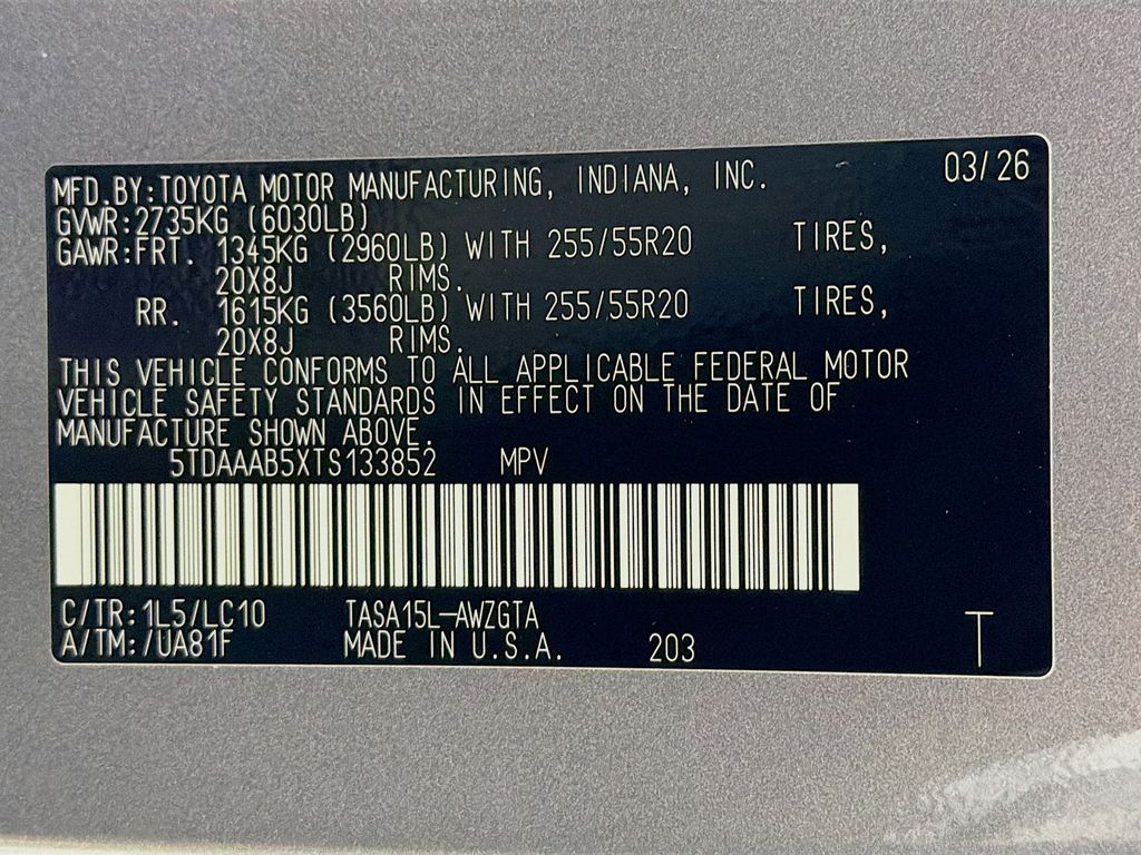 VIN 5TDAAAB5XTS133852
