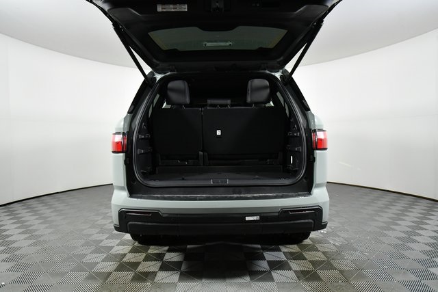 - Fabric 60/40 split, sliding, reclining, power fold-down third-row seats with adjustable headrests