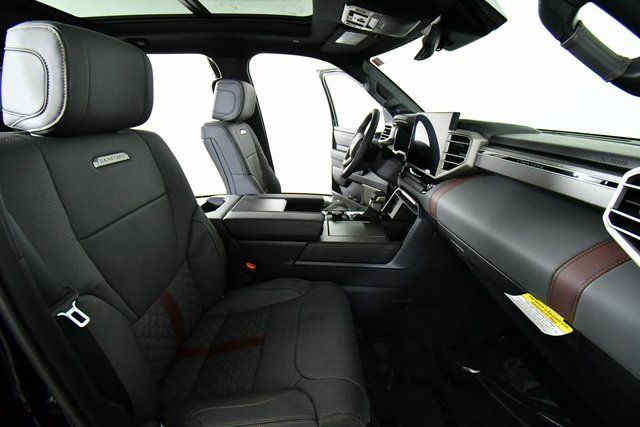 - Dark-gray American walnut wood-grain interior trim with backlit "CAPSTONE" instrument panel badge and metal speaker grilles