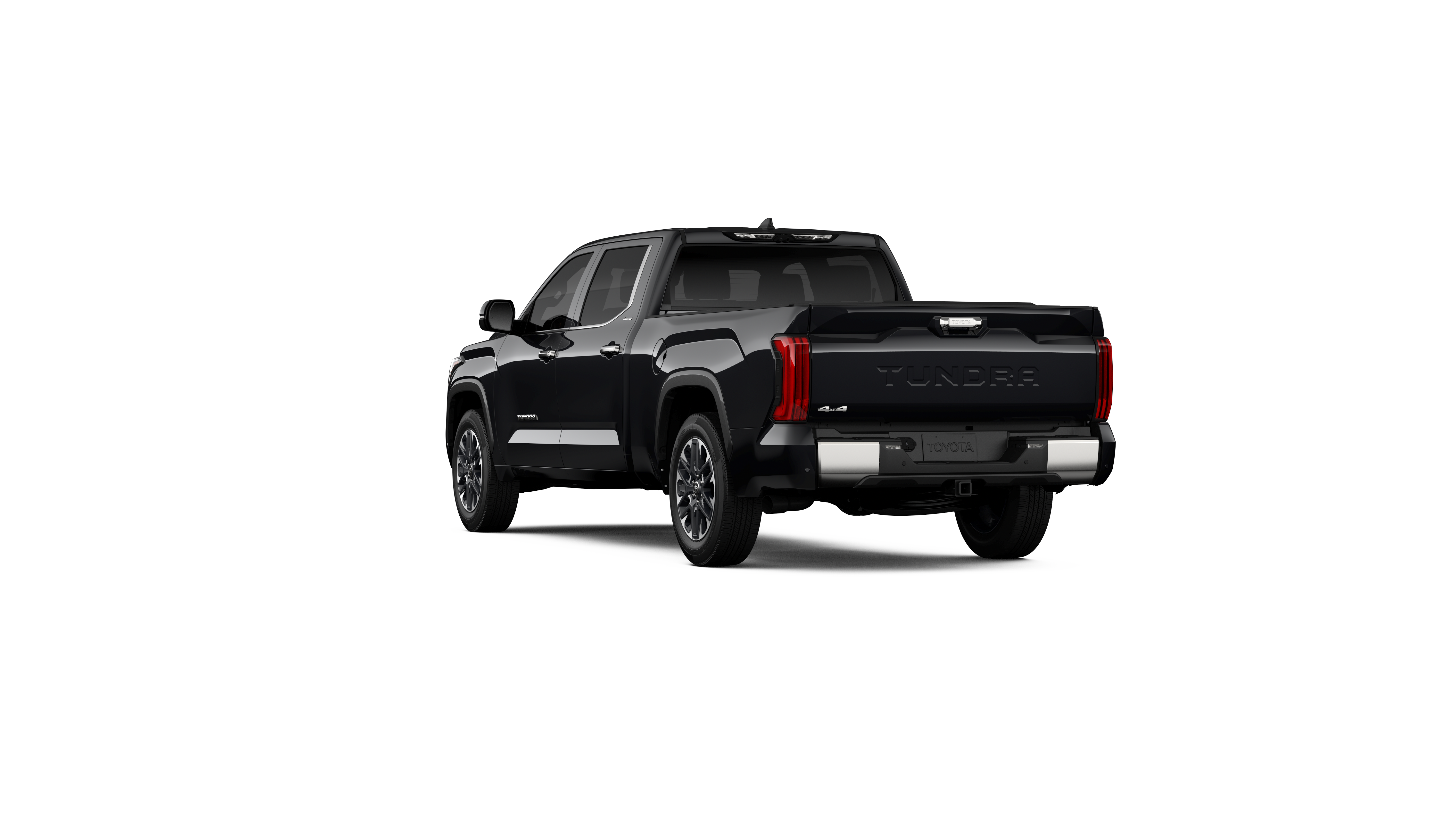 - Chrome "TUNDRA" and "LIMITED" door badges, door handles and window molding; color-keyed mirror caps and tailgate spoiler; gray-painted overfenders