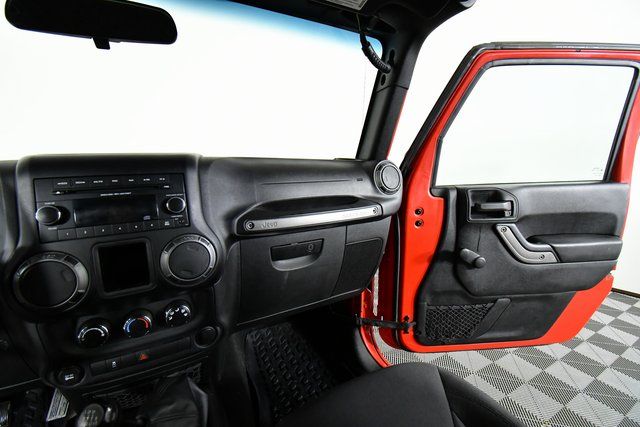 Clean CARFAX. This Jeep Wrangler is well equipped and includes the following key features, Cruise Control, Auto Locking Hubs, Block Heater, Locking Glove Box, 4-Wheel Disc Brakes, Brake assist, Cloth Bucket Seats, Engine Block Heater, Front fog lights, Integrated roll-over protection, Normal Duty Suspension, Quick Order Package 23B, Radio: Uconnect 130 AM/FM/CD/MP3, Sunrider Soft Top.