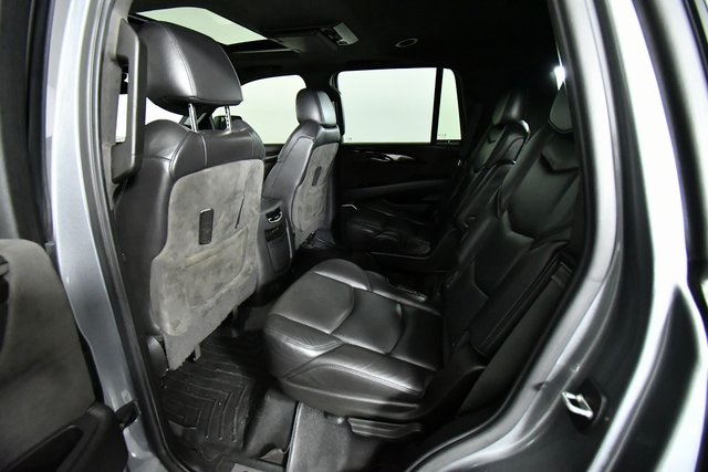 Clean CARFAX. This Cadillac Escalade is well equipped and includes the following key features, Collision Avoidance System, Collision Warning System, 360 degree Camera, Adaptive Cruise Control, Heated and Cooled Seats, Heated Seats, Blind-Spot Monitors, Bluetooth Hands-Free, Lane Keeping Assist, Navigation System, Touchscreen Controls, Heads-Up Display, Backup Camera, Keyless Access with Push Button Start, Automatic Headlights, Apple CarPlay, Android Auto, 12-Way Power Front Passenger Seat Adjuster, 1st 2nd & 3rd Row All-Weather Floor Mats (LPO), Advanced Adaptive Cruise Control, All-Weather Cargo Mat (LPO), Apple CarPlay/Android Auto, Automatic Seat Belt Tightening, Bose Centerpoint 16 Speaker Surround Sound System, Cooled Console w/Covered Storage, Driver Assist Package, Driver Awareness Package, Electronic Powered Parking Brake, Enhanced Automatic Emergency Braking, Exterior Parking Camera Rear, Forward Collision Alert, HD Radio, Heated door mirrors, Heated steering wheel, Illuminating Door Handles, Inclination Sensor, IntelliBeam Automatic High Beam On/Off, Interior Protection Package (LPO), Lane Change Alert w/Side Blind Zone Alert, Lane Keep Assist w/Lane Departure Warning, Leather Wrapped IP/Console/Door, Magnetic Ride Control Suspension, Memory seat, Microfiber Sueded Headliner, Navigation System, Platinum Package, Platinum Sill Plates, Power Configurable Second Row Bucket Seats, Power Tilt-Sliding Sunroof w/Express-Open/Close, Power-Retractable Assist Steps, Preferred Equipment Group 1SD, Premium Floor Mats, Radio: AM/FM Cadillac User Experience w/Nav, Rear Camera Mirror, Rear Camera Mirror Washer, Rear Cross Traffic Alert, Rear Seat Entertainment System, Reconfigurable 4-Color Head-Up Display, Remote keyless entry, Reverse Automatic Braking, Safety Alert Seat, SiriusXM NavTraffic, SiriusXM Radio, Sumi Black Tamo Ash Unique Exotic Wood, Theft-Deterrent Alarm System, Theft-Deterrent Package, Unique Grille Design, VAC Power 17" Disc Brakes, Vehicle Interior Movement Sensor.