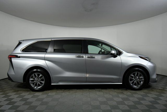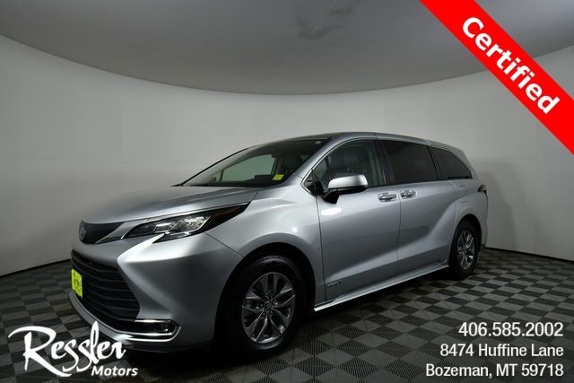 Certified. Silver 2021 Toyota Sienna XLE 7 Passenger 4D Passenger Van AWD 2.5L I4 35/36 City/Highway MPG