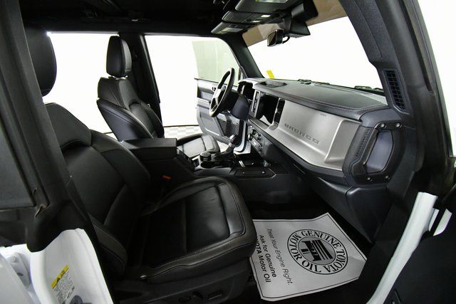 Clean CARFAX. Odometer is 9084 miles below market average! This Ford Bronco is well equipped and includes the following key features, 360 degree Camera, Heated Seats, Bluetooth Hands-Free, Navigation System, Touchscreen Controls, Backup Camera, Keyless Access with Push Button Start, Automatic Headlights, Apple CarPlay, Android Auto, 360-Degree Camera, Adaptive Cruise Control, Brake assist, Equipment Group 314A Lux Package, Evasive Steering Assist, Exterior Parking Camera Rear, Front Parking Sensors, Fully automatic headlights, Heated front seats, Heated Leather-Trimmed/Vinyl Bucket Seats, Heated steering wheel, Information on Demand Panel, Internet access capable: FordPass Connect, Navigation system: Connected Navigation, Radio: B&O Sound System by Bang & Olufsen, Sideview Mirrors, Universal Garage Door Opener.