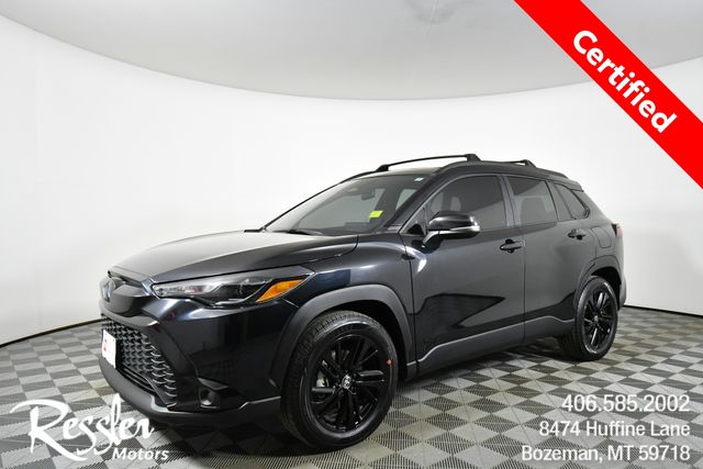 Certified. Jet Black 2025 Toyota Corolla Cross Hybrid Nightshade 4D Sport Utility AWD 2.0L I4 PDI Hybrid DOHC 16V LEV3-SULEV30 150hp 45/38 City/Highway MPG
